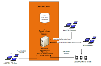 JC360 is available from cloud or possible to setup inside the company. If you decide by onsite environment you will need two servers and our setup wizard will preapre them to host internal JC360 clients.