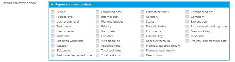 - when checked, the report shows every task, even tasks with 0 booked time