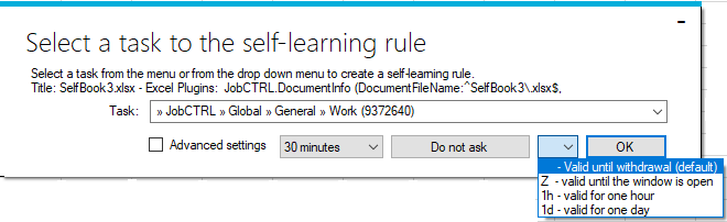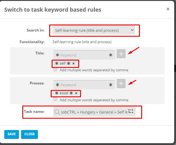 Search after “self learning rule” and fill the title and process condition. The rule will be activated only when the two conditions are fulfilled at the same time! In the end you should enter a task. Note that the rule will only work with users who are assigned to this task.