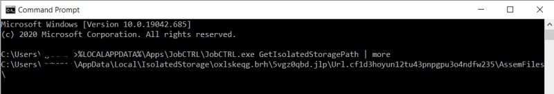 Therefore this situation, use the Windows button + r combination on the old PC and search for %LOCALAPPDATA%\Apps\JobCTRL\JobCTRL.exe GetIsolatedStoragePath | more in the cmd.exe.The command will show you the folder you will have to look after.