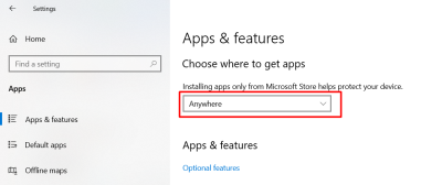 3. Select “Anywhere” from the options given at “installing apps only from Microsoft Store helps protect your device” .
