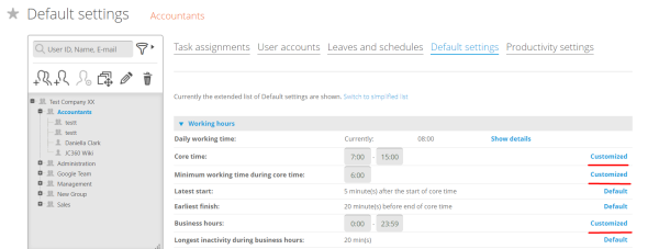 - The last in the order of strength are the settings defined in the default settings at company level.