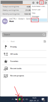 The easiest way to reach the feauture is to open it from the Client. All you have to do is press right mouse button on the jc360 client. The pop-up window will show up, at the top right corner there will be the 3 dots menu, press it with the left mouse button, then select the TODOs menu.