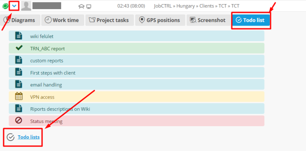 The easiest way to reach the feauture is to open it from the Client. All you have to do is press right mouse button on the jc360 client. The pop-up window will show up, at the top right corner there will be the 3 dots menu, press it with the left mouse button, then select the TODOs menu.
